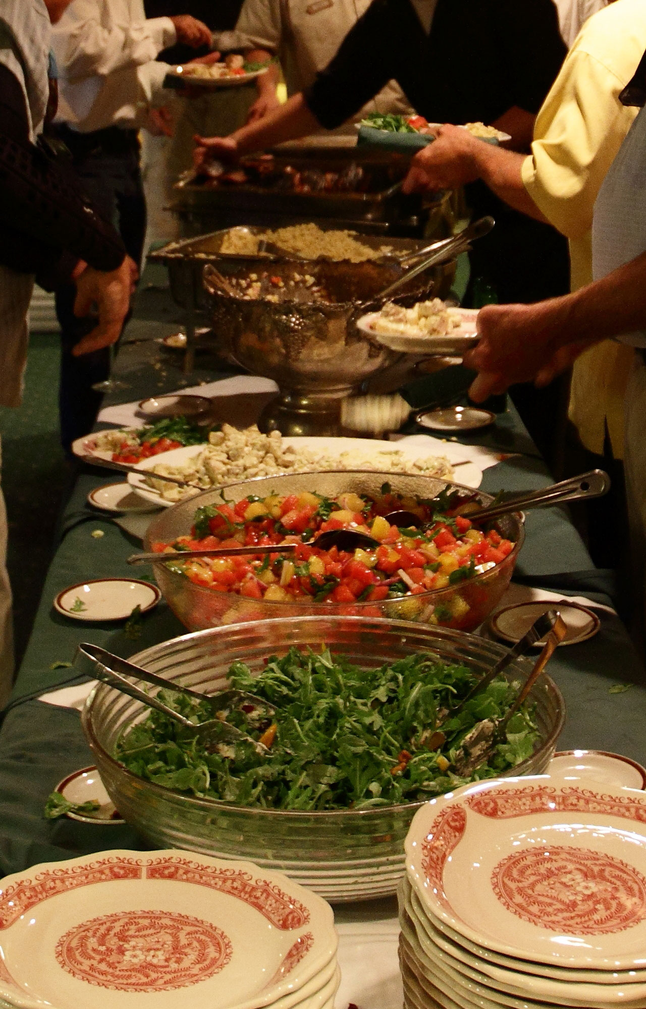 White Table Cloths and Green Cloth Napkins
